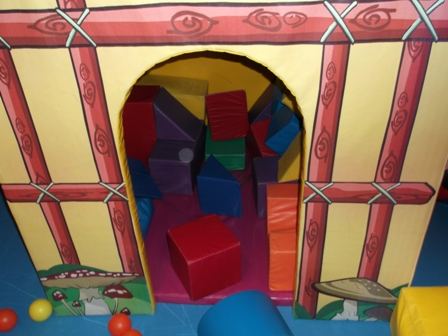 Kolmivuotias vieraamme suunnisti ensin 0-4 -vuotiaiden puolelle, jossa oli mm. pieni pallomeri, liukumäki, keinuhevosia ja kaikenlaisia isoja palikoita. Ensin kerättiin alueella olevat pallot pallomereen, johon mentiin sukeltelemaan. Liukumäki oli ehkä hieman liian jyrkkä ja kovavauhtinen, sillä sinne Daniel ei halunnut toista kertaa.